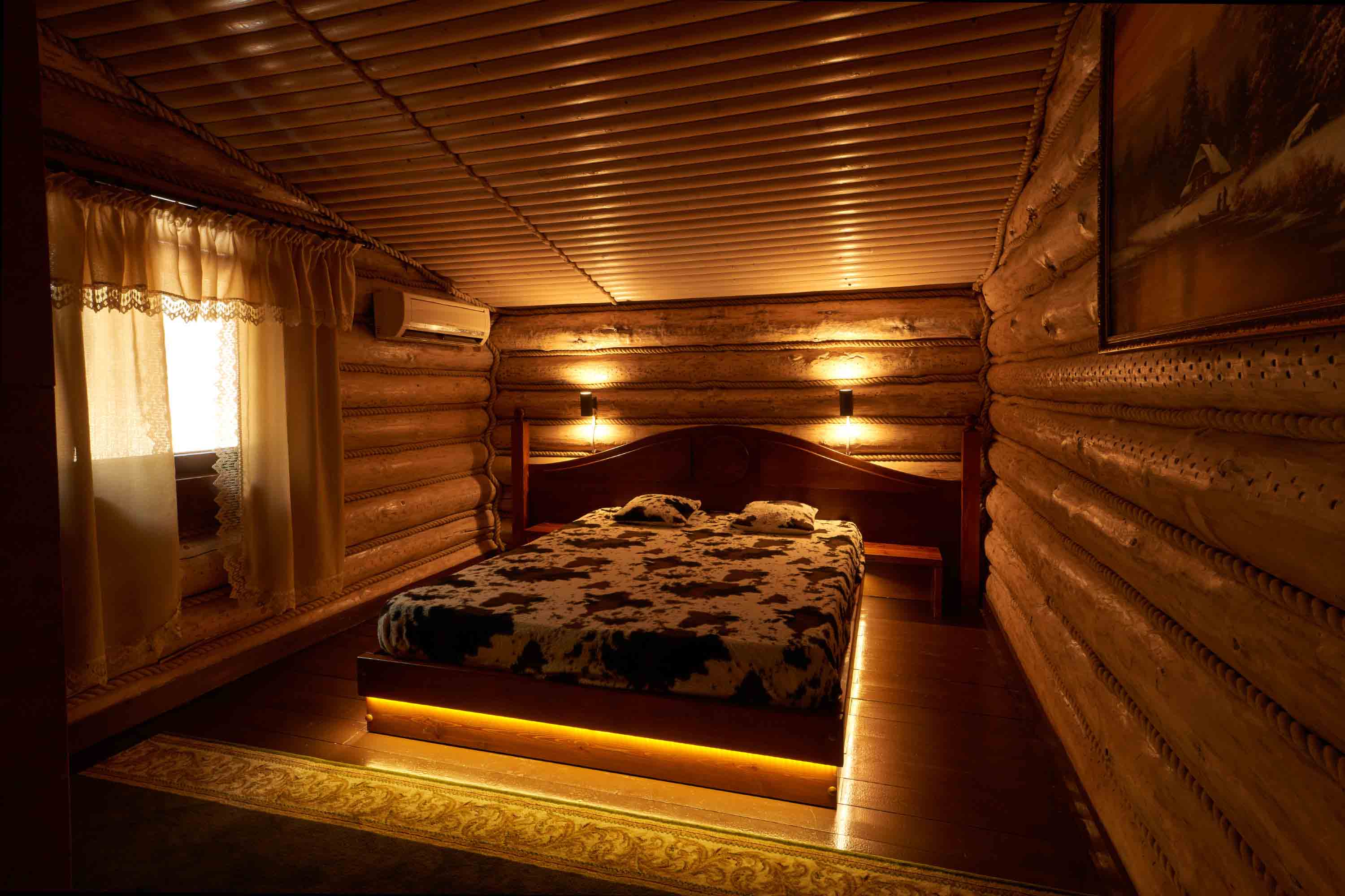So, the log house "Hunting" is a unique man's atmosphere with numerous trophies and exclusive elements of a decor. It is made of natural logs and attracts unassuming beauty. Renting this log house on our recreational center is not just an opportunity to really relax and plunge into the warmth of clean taiga air, this is an ideal solution for active recreation lovers, because in this house you can find billiards and pool.