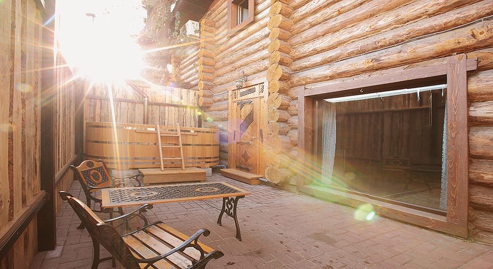 Do you need a sauna with a firewood stove? You can find a spacious sauna with steam room and hammam for a large company in the log house “Ermak”. This log house is for the lovers of real Turkish ritual. There is also nine-meter pool overlooking the inner courtyard with two spacious phyto-barrels and the interior is made in the attributes of the epoch of Ivan the terrible and a rich merchant's life, you can fell the spirit of military victories and conquest of Siberia. The log house is made of row material of the Siberian pine, which exudes a fascinating aroma, filling the room with invigorating phytoncides.