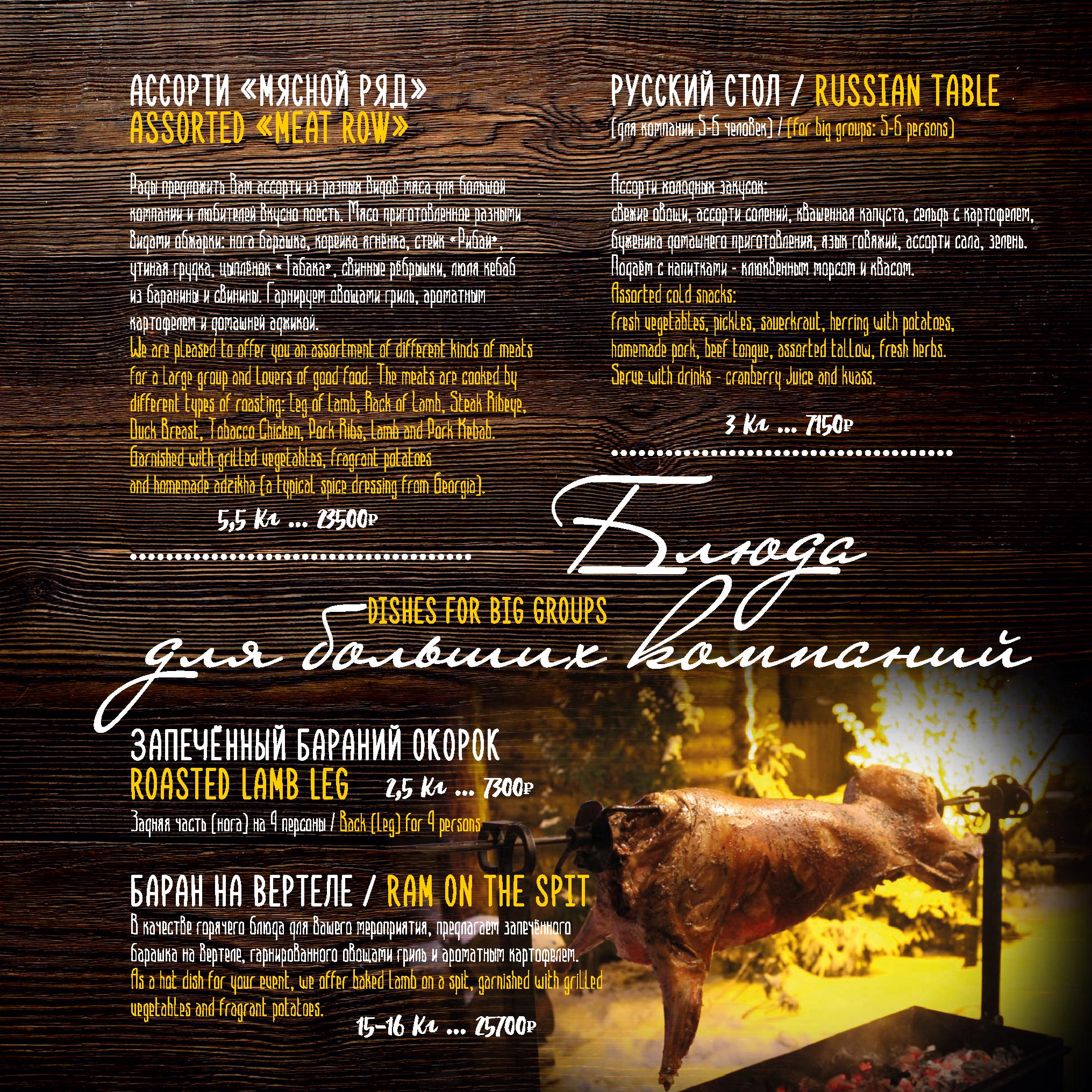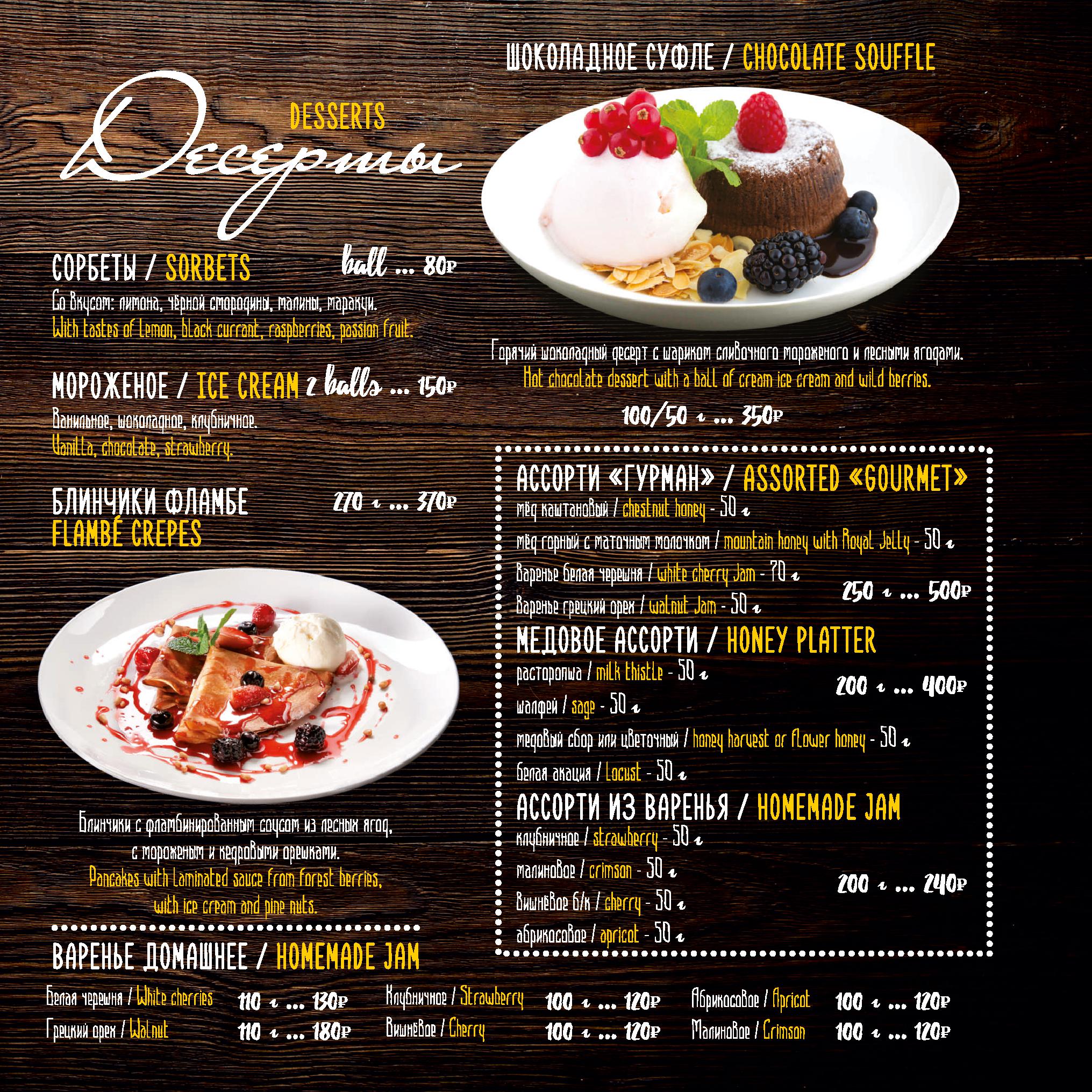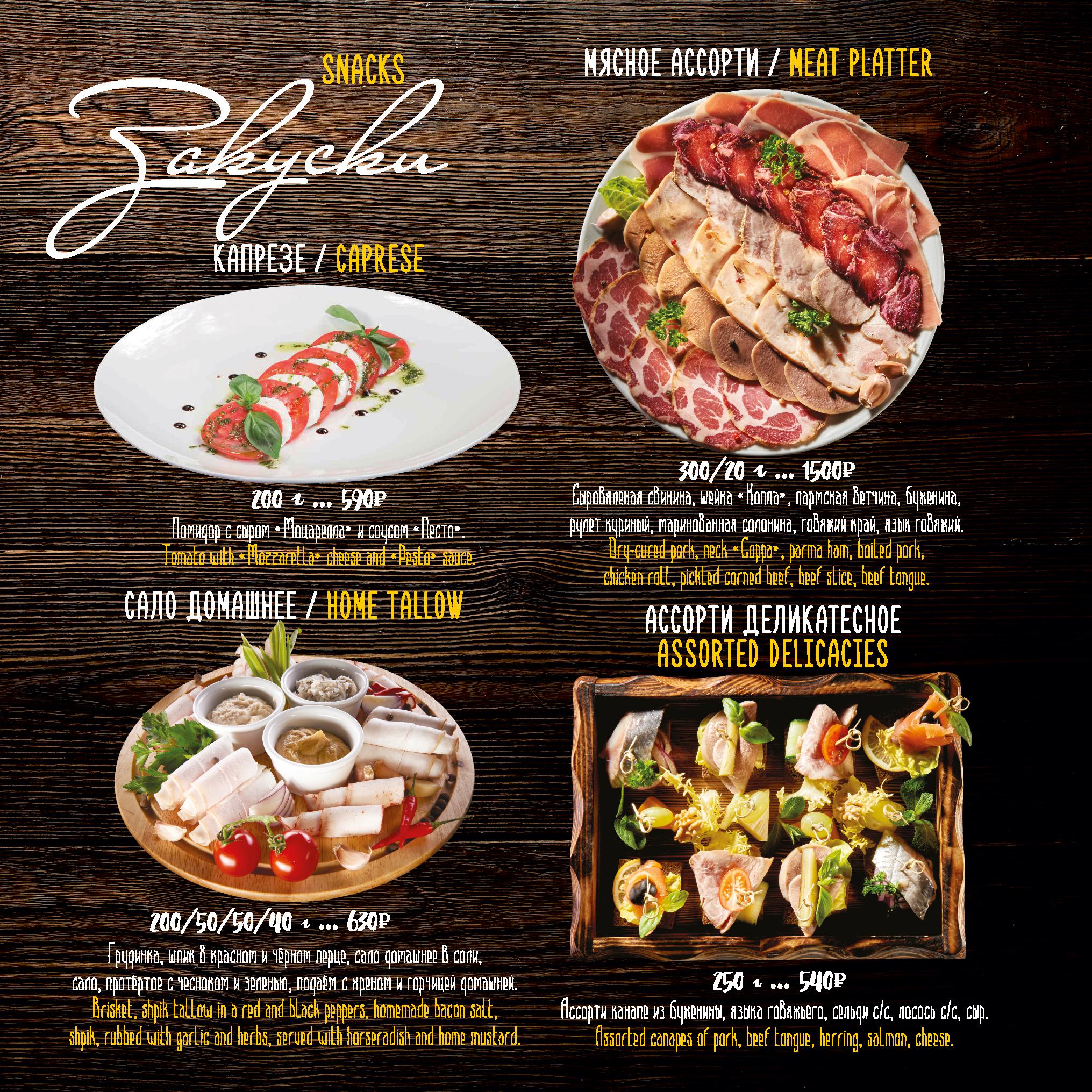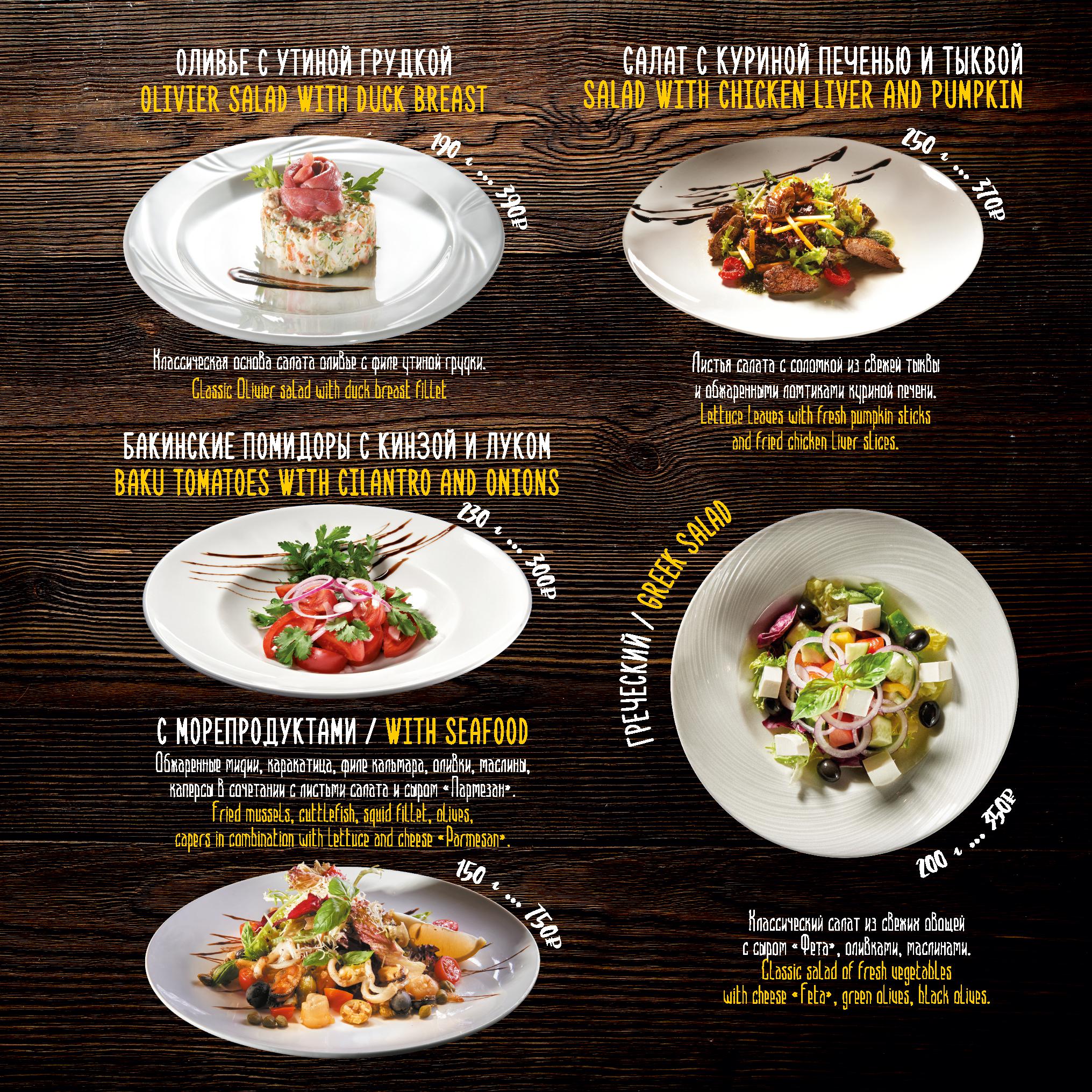 Меню ресторана